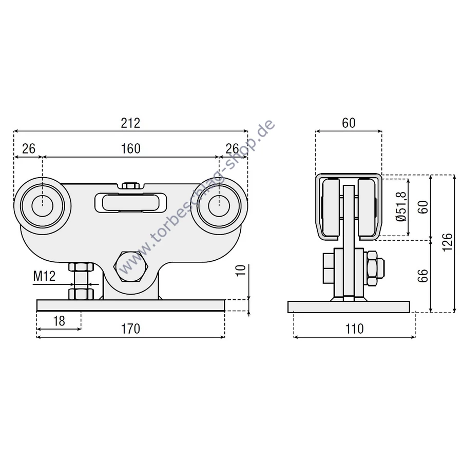 Werkstoff | Stahl DIN ST37-2 (S235JR), Rollen: Stahl DIN C45 |